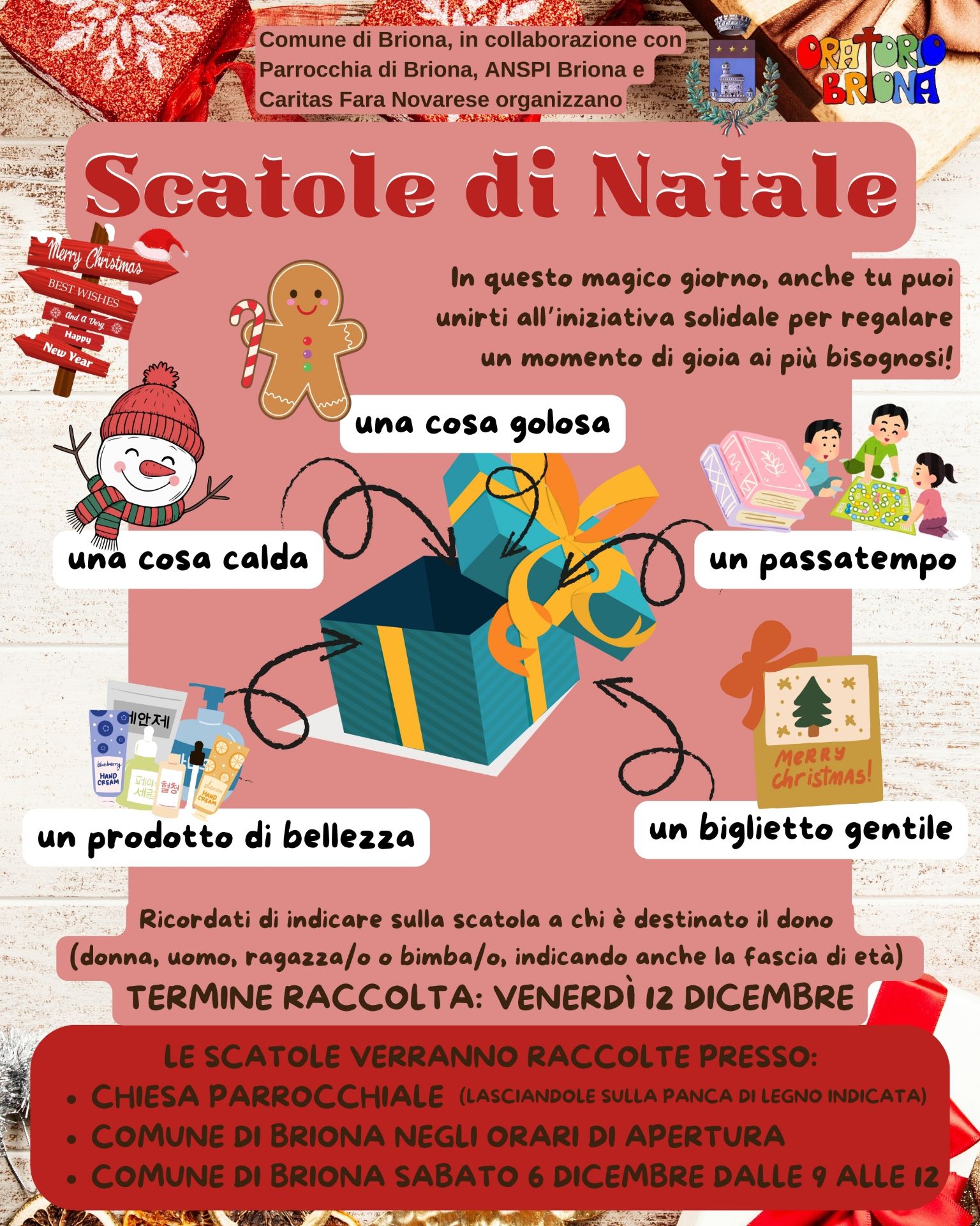 Il Comune di Briona, in collaborazione con Parrocchia di Briona, ANSPI Briona e Caritas Fara Novarese, organizzano "Scatole di Natale"!