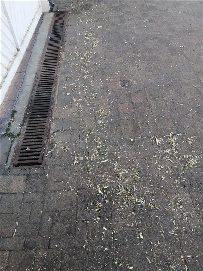 In via provinciale i marciapiedi sono sporchi probabilmente in seguito al transito di mezzo di trasporto (trattore?) carico di materiale per alimentare impianto di biogas.