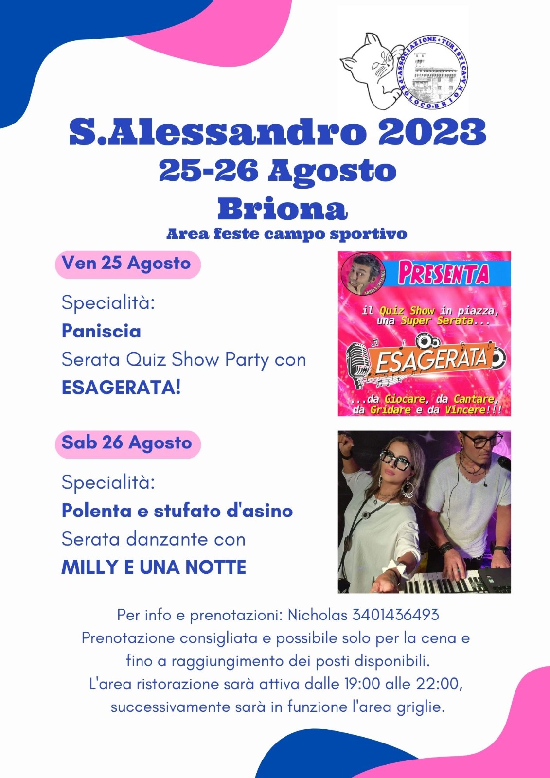 Ritorna alla grande il programma di eventi gastronomici, musicali e di divertimento per la Festa di Sant'Alessandro, a cura della Pro Loco di Briona.