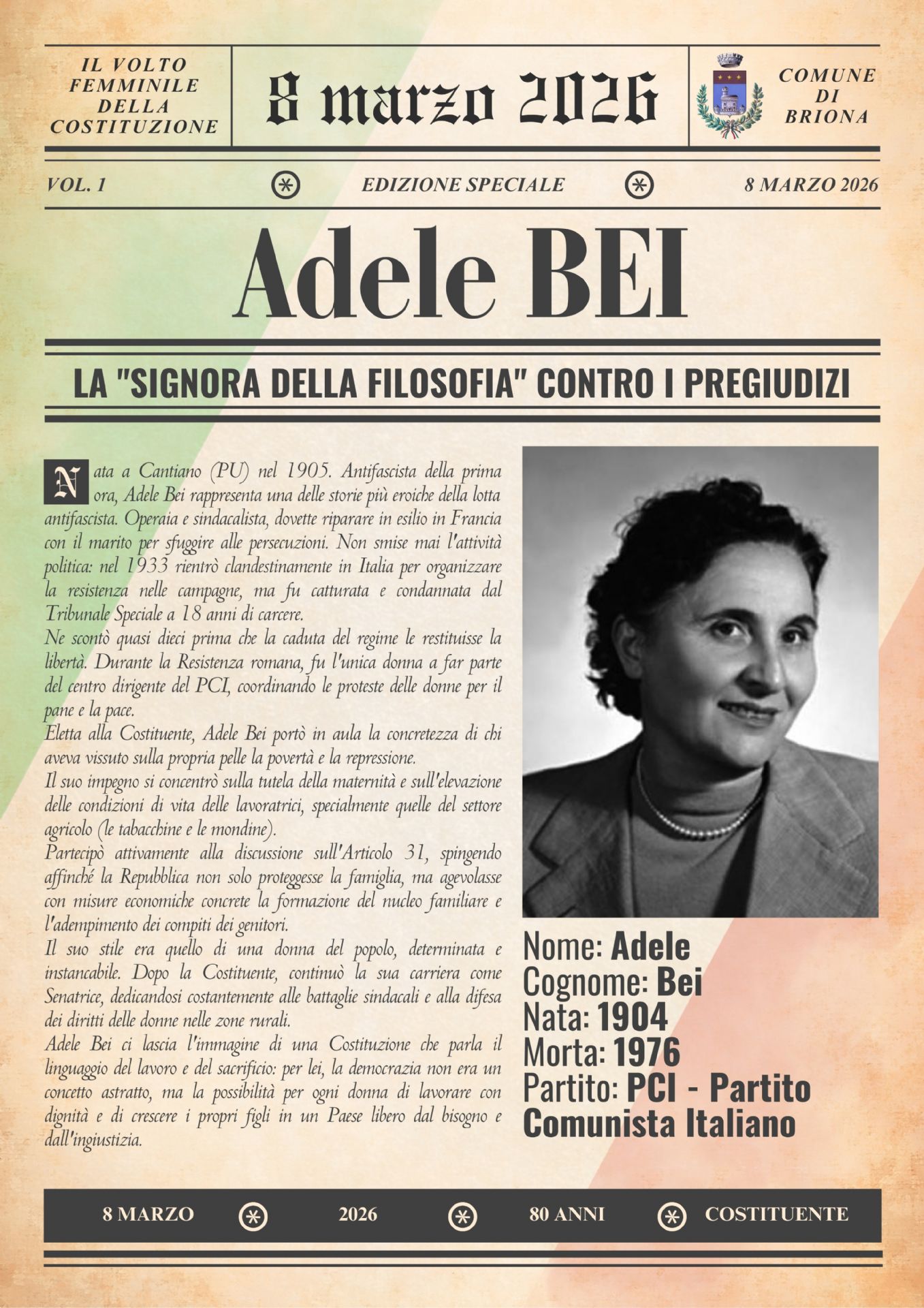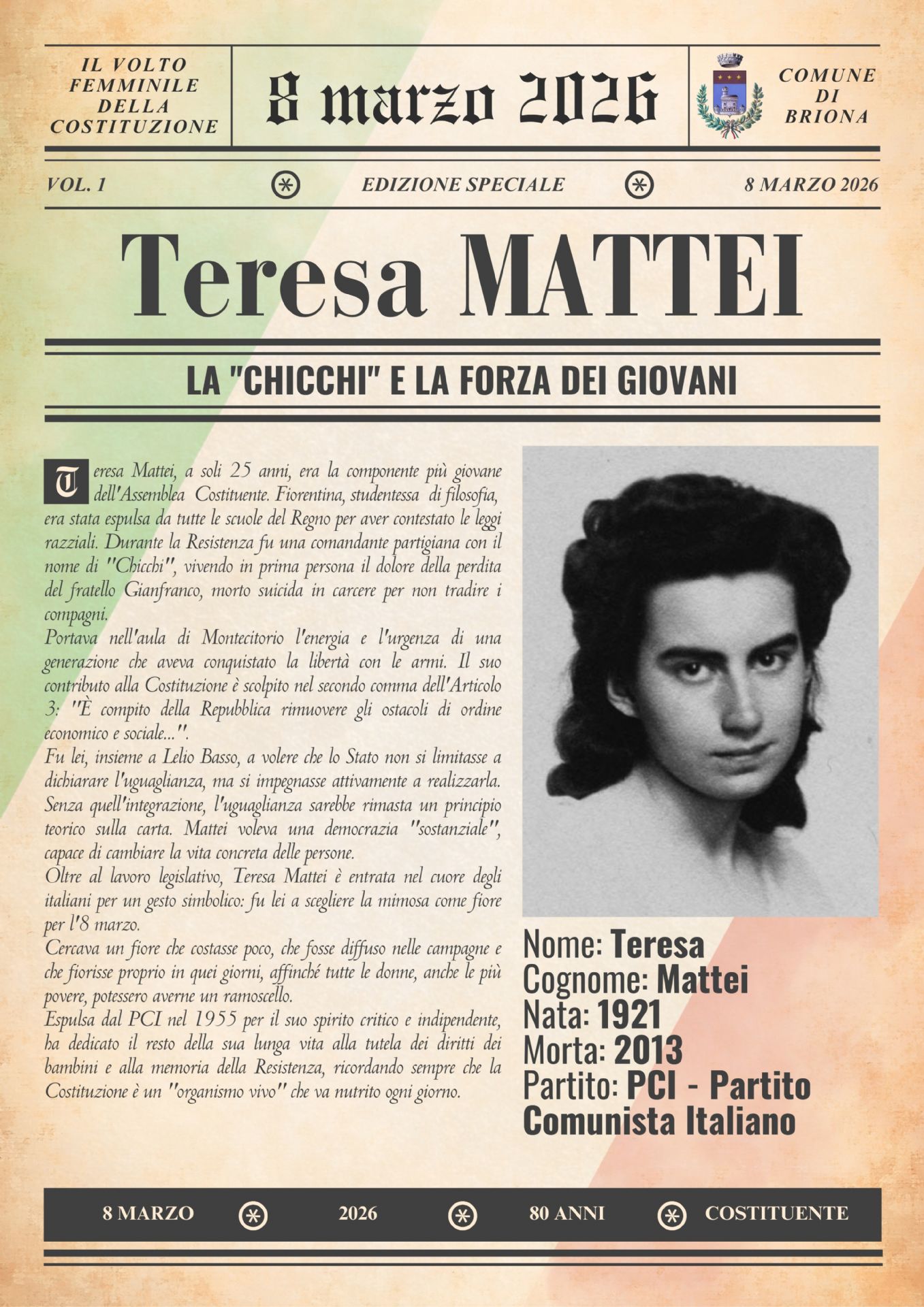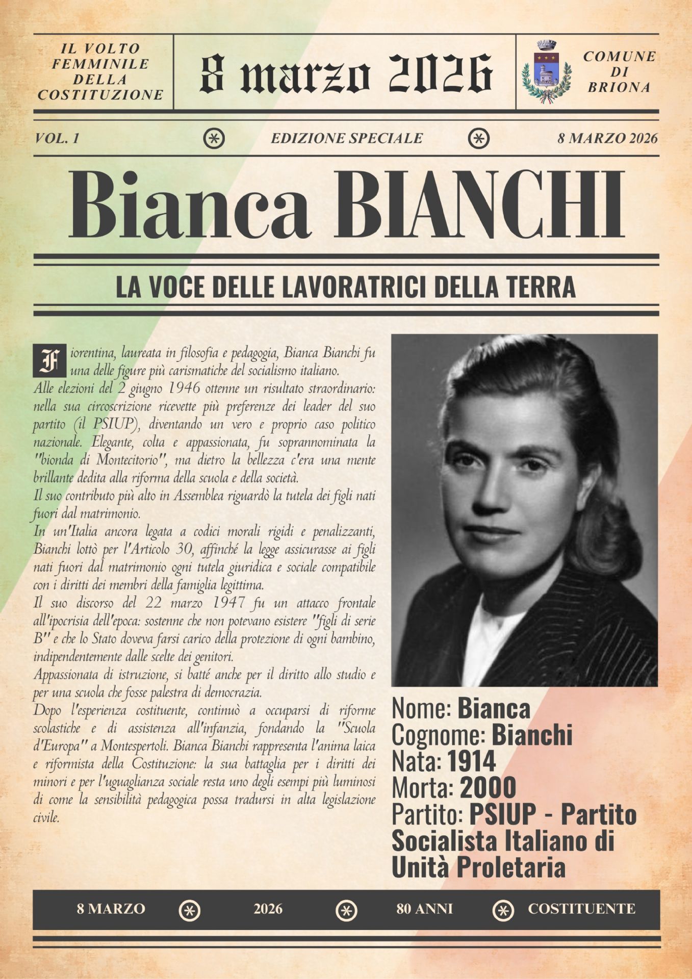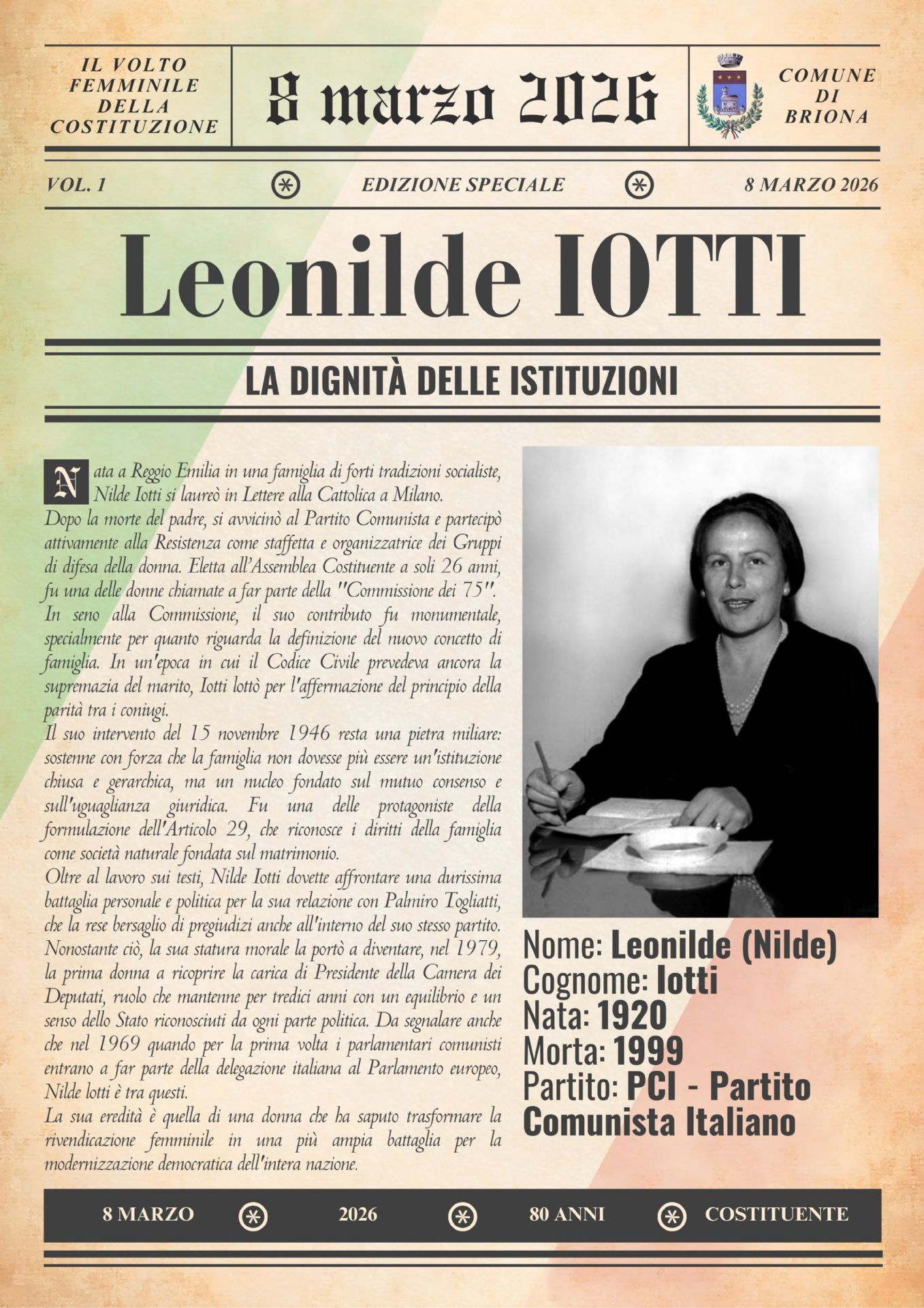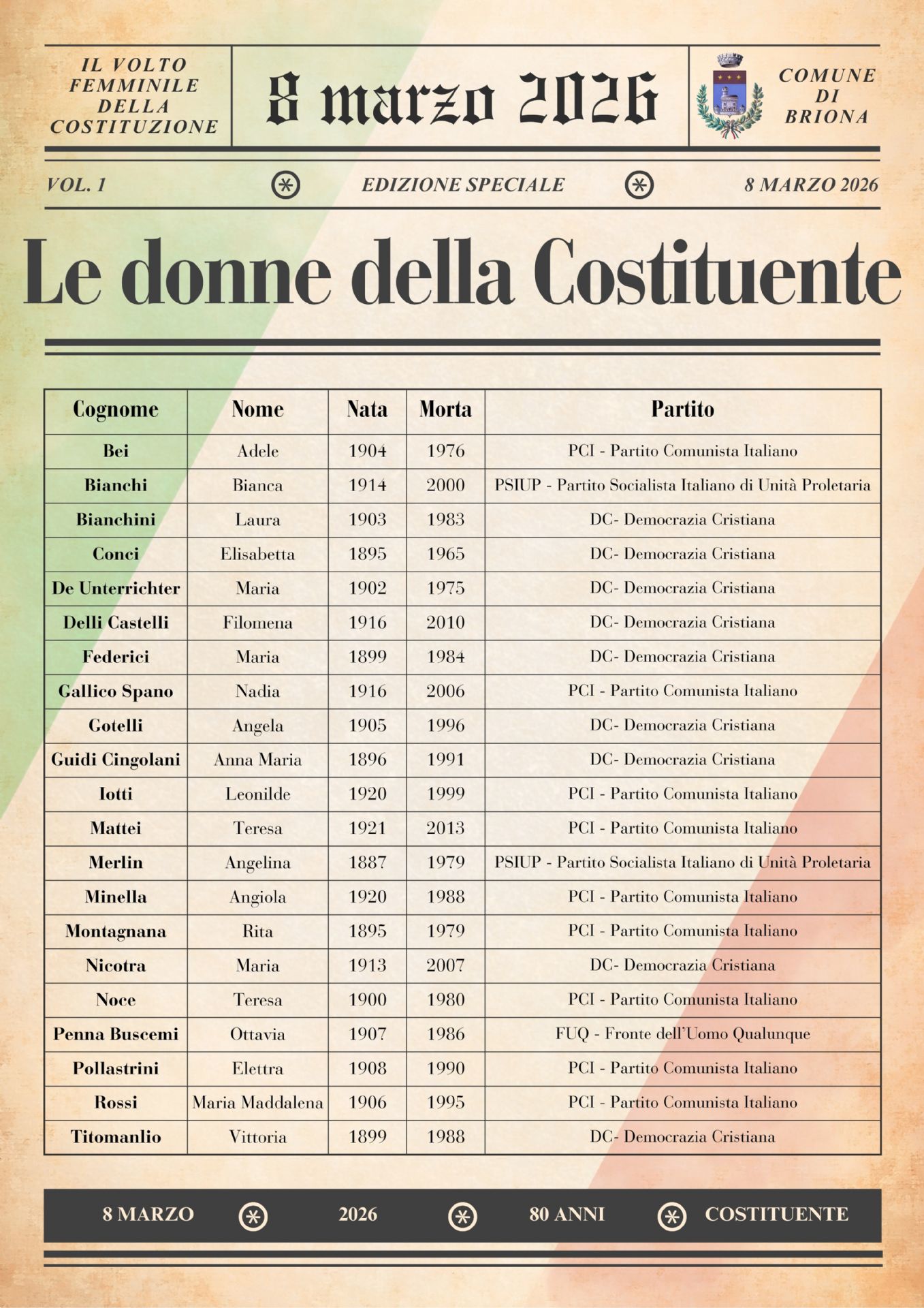 In questa pagina sono pubblicate le storie delle 21 Madri Costituenti, che hanno composto la mostra esposta a Briona in occasione dell'8 marzo 2026.