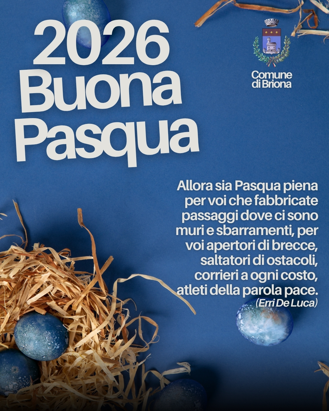 Il Sindaco e l'Amministrazione Comunale augurano a tutti i concittadini una Buona Pasqua. Che questi giorni di festa portino serenità, luce e momenti di felice condivisione a tutta la nostra splendida comunità.