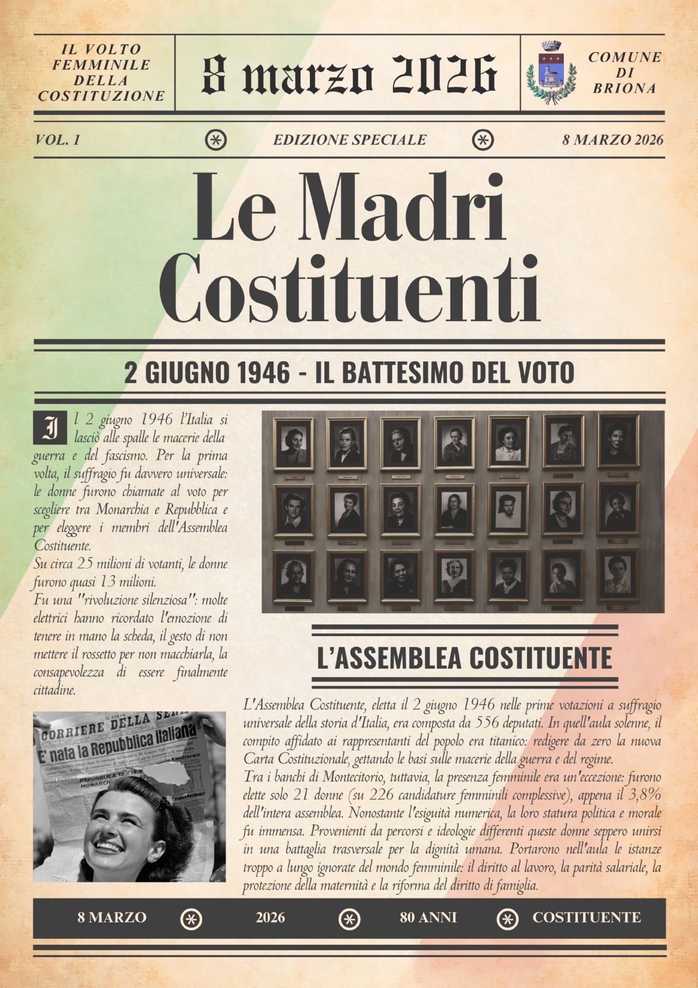 In questa pagina sono pubblicate le storie delle 21 Madri Costituenti, che hanno composto la mostra esposta a Briona in occasione dell'8 marzo 2026.